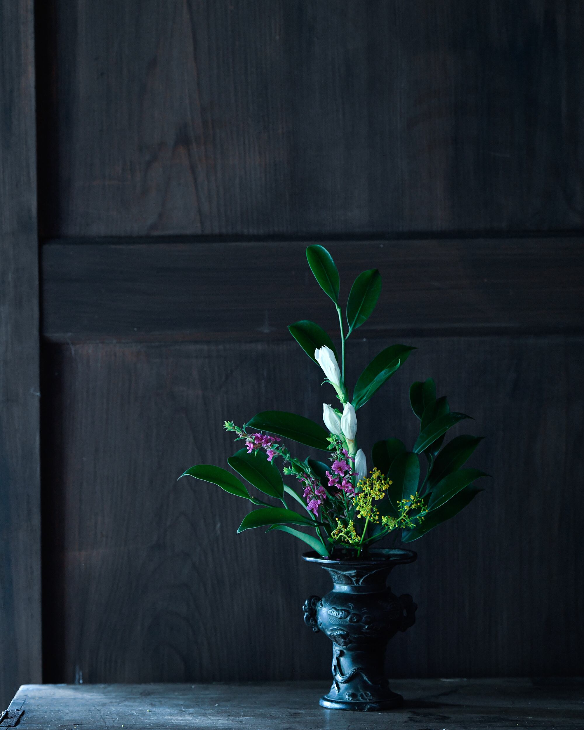 榊を軸に、白いリンドウ、禊萩、女郎花など