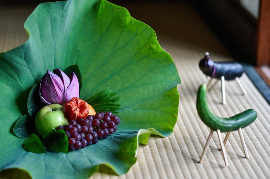 ・八月(迎え盆/送り盆):蓮、季節の盆花などで、目に見えないものと心通わせる